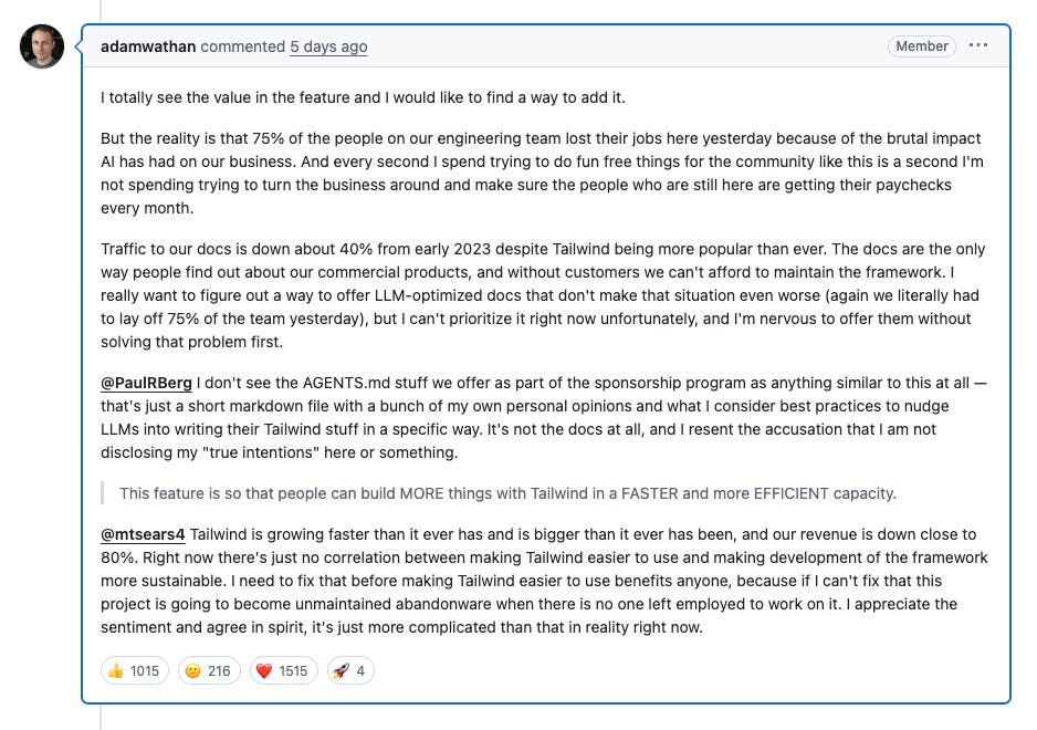 AI zabija biznesy: Tailwind & StackOverflow